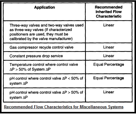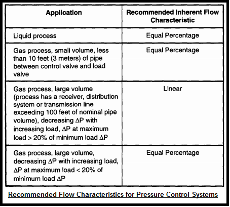 During selection of throttling valve, a choice must be made between linear and equal percentage characteristic. Two general rules foe choosing the valve: